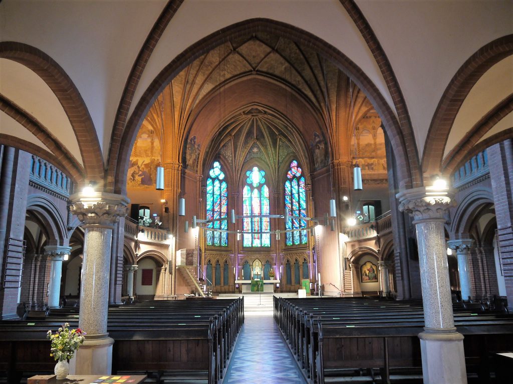 | Neugotisch 1894 von F. Schwechten, 1000 Plätze, Fresken u. Glasmalereien des 19. Jh. |
