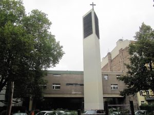 | 1960 auf dreieckigem Grundriss, bemerkenswerte Glasfenster | Auskünfte in der Küsterei, Tel. 030- 2158001 |