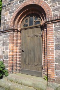 | Neuromanischer Bau von 1883, Rundfenster in der Apsis von Andrea Wilde (2007) | Besichtigung möglich nach Absprache mit der Imkerei Krüger, Köpernitzer Dorfstr. 15, Tel. 0162-4051906 |