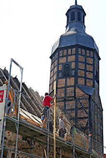 Bei genauerem Hinsehen fällt dem begeisterten Betrachter jedoch auf, dass die Langennaundorfer Kirche dringend einer umfassenden Sanierung harrt. Die Bretter der hölzernen Tonnendecke, und mit ihnen die Malereien, sind durch eindringende Feuchtigkeit bereits stark geschädigt. Bevor hier jedoch an eine Restaurierung gedacht werden kann, müssen die Dachdeckung und die Dachkonstruktion instandgesetzt werden. Dies wiederum setzt voraus, dass – vor dem Abnehmen der alten Dachsteine – die Deckenkonstruktion wenigstens gesichert wird. Mit kleinen Schritten ist es hier also nicht getan; die Instandsetzungsarbeiten müssen gut aufeinander abgestimmt werden.