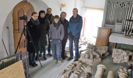 Auf dem Foto sind v.l.n.r. Dörte Busch (BLDAM), Frau Guhr, Herr Eichler, Lina Horstmann (Studentin der FH Potsdam), Frau Giesel, Herr Giesel (Mitglied im GKR).