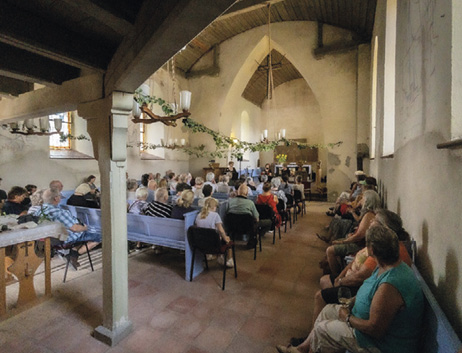 fanden sich Kirchen- und Nichtkirchenmitglieder zusammen, um die sehr renovierungsbedürftige Kirche für‘s Dorf zu retten. Denn die sollte aufgegeben werden. Heute umfasst der Verein etwa 50 Mitglieder. „Nicht jeder kann mit jedem, aber wir teilen uns das eben auf. Deshalb sind wir ein Sammelbecken für so sehr verschiedene Leute. Die Kirche ist nun ein Raum für alle und mancher betrat sie zum Konzert zum allerersten Mal in seinem Leben. Auch unsere Aktionen sprechen ganz verschiedene Leute an, nicht jeder liebt Alles. Aber ganz verschiedene Leute haben dafür den Hut auf und ziehen andere mit. Es ist ein Glücksfall – und ein Geschenk“, so Martin Schulze.