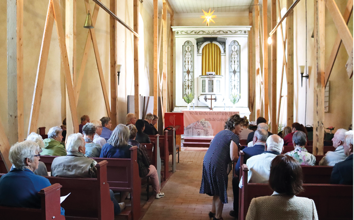 Am 10. August 2025 wurde das 15-jährige Jubiläum des Fördervereins mit einem Gottesdienst gefeiert. Pfarrerin Barbara Kohler hielt eine eingängige Predigt und ersetzte die Orgel routiniert durch Laptop und Lautsprecher und so wurde auch gut gesungen – keine Selbstverständlichkeit, denn in der Kirche finden nicht mehr regelmäßig Gottesdienste statt. Etwa 50 Personen waren gekommen. Nach dem Gottesdienst gab die Vorsitzende des Fördervereins Anette Hirseland einen Rückblick über Gründung und Aktivitäten des Vereins und stellte den Vorstand vor. Es wurden Kerzen für die verstorbenen Mitglieder angezündet. Uwe Donath, der ehemalige Regionalbetreuer des Förderkreises Alte Kirchen, wurde für seine jahrelange Unterstützung geehrt. Der nächste Höhepunkt war der Festvortrag des Oderbruch-Experten Dr. Reinhard Schmook, der sehr anschaulich über die Geschichte der Kirche referierte. Er erzählte zum Beispiel, dass der 1919 verstorbene Gutsherr von Harnekop, Generalfeldmarschall Gottfried Graf von Haeseler, vor dem Altar zwischen seinen Eltern in einer Gruft begraben sei. Vor einem heute nicht mehr vorhandenen Gedenkstein hätte ihm jedes Jahr zum Geburtstag eine Abordnung seines Regiments feierlich die Ehre erwiesen.